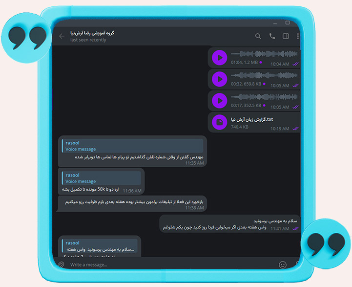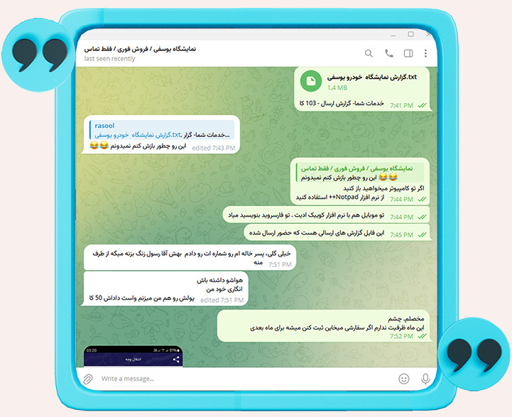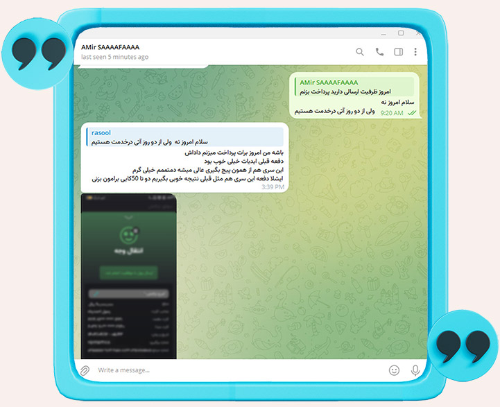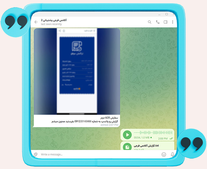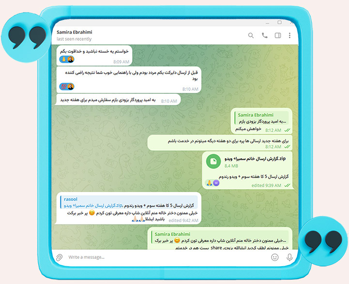 (ما بسته به سفارش شما، چند اسکرین شات یا ویدیو از پیام های ارسال شده برای شما ارسال میکنیم) -